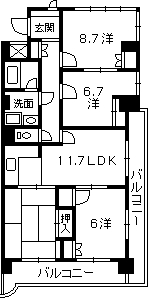 間取 4LDK 間取詳細 6和8.7洋6.7洋3洋11.7LDK